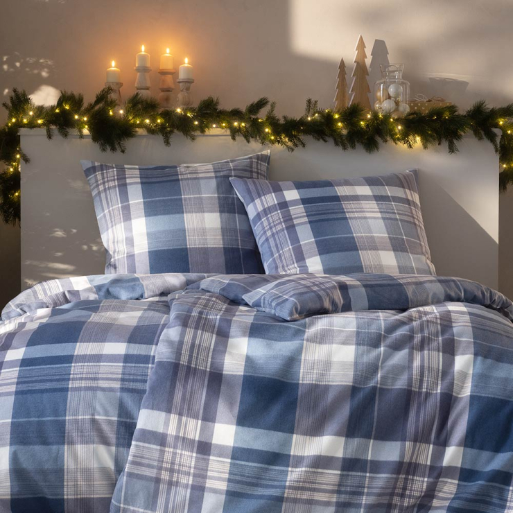 Kuschelflanell Bettwäsche Estella Ambros navy 135x200cm mit 80x80cm